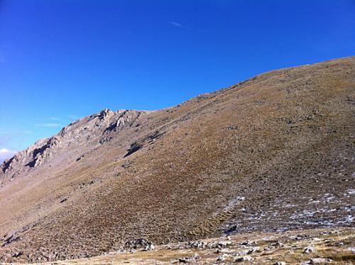 4.jpg Η κορυφή Πυραμίδα, 2508μ από περίπου 1800 μέτρα υψόμετρο. Πίσω από την πλαγία στο βάθος είναι η Βαθειά Λάκα και αριστερά συνεχίζουμε για το Διάσελο. Χρήστης: SV1COX [1508 Hits] |
